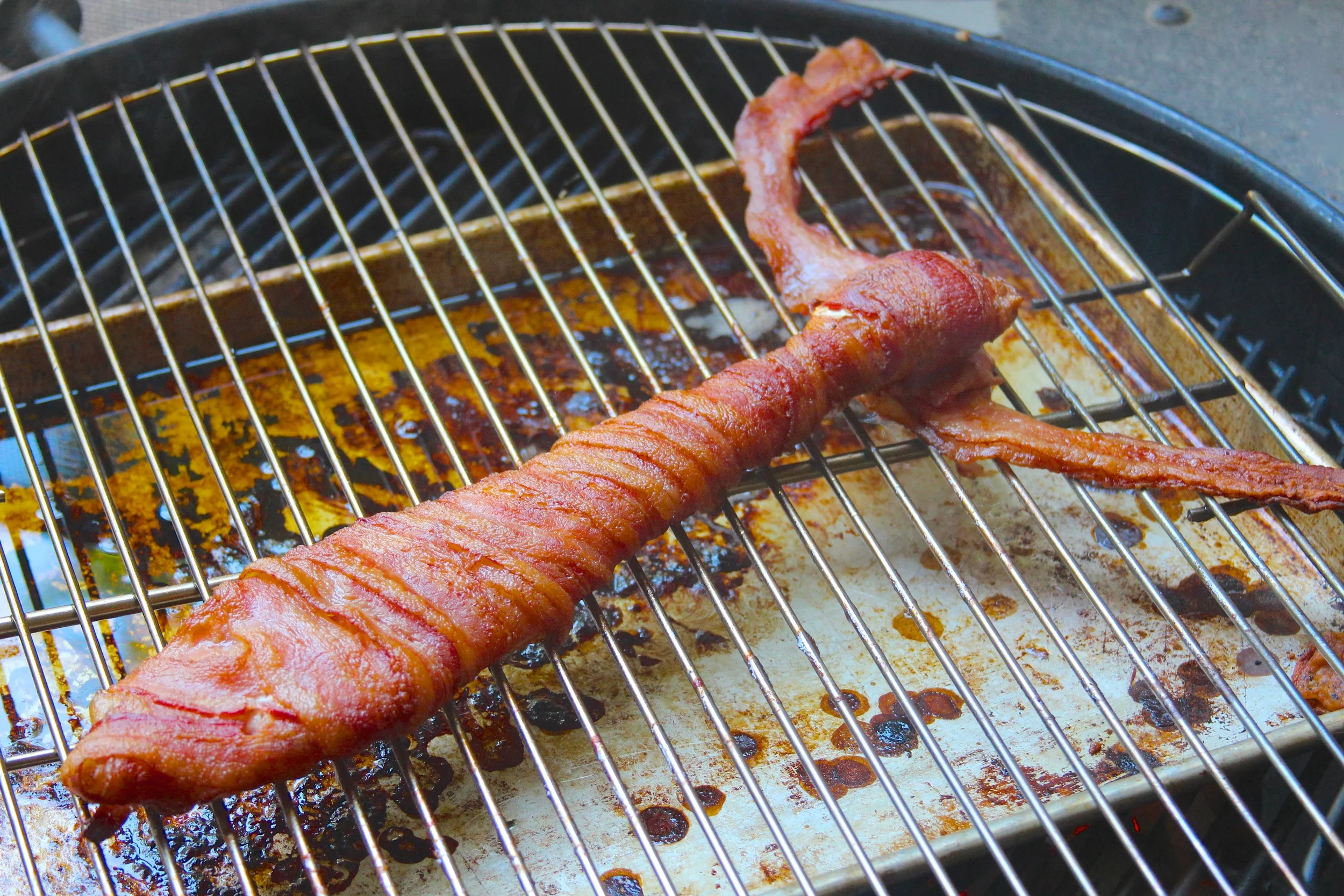 That, however, is all about to change with Grillocracy's latest grilling creation, the Smoked Bacon Tie! Constructed of two pounds of interwoven bacon then smoked indirectly on the grill for approximately 1 hour until the bacon is nicely browned, the bacon tie will provide hours of eating enjoyment for dear old dad on his big day (assuming he doesn't want to wear it to work on Monday!).
